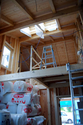 屋根が葺き上がり、木窓が付き、壁の下地が出来上がったので、