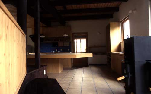 北海道に憧れて札幌に移住してきたKさん一家が、羊蹄山を望み、足元に渓流の流れる比羅夫の土地に出会い、永年の夢を実行に移す決心をしました。 冬はスキー、夏は登山や渓流釣(?)と、アウトドア派の家族ですが、夜は一転、読書や団欒を楽しみにするといった、オールシーズン+フルタイム仕様が求められました。 羊蹄と渓流を両方ゲットする為に曲げた『くの字』の平面も、内外両方に楽しい空間を提供しています。 そんな、小さいながらも欲張りな建物が完成して2週間ほど経って撮影に行ったところ、建物に似合った小物や道具が揃えられ、すっかり、Kさん方の家になっていました。