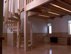 内部は、大工さん渾身の一作の螺旋階段が完成しました。