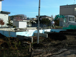 建て方はすでに終了し、建物のかたちが見えるはずですが、